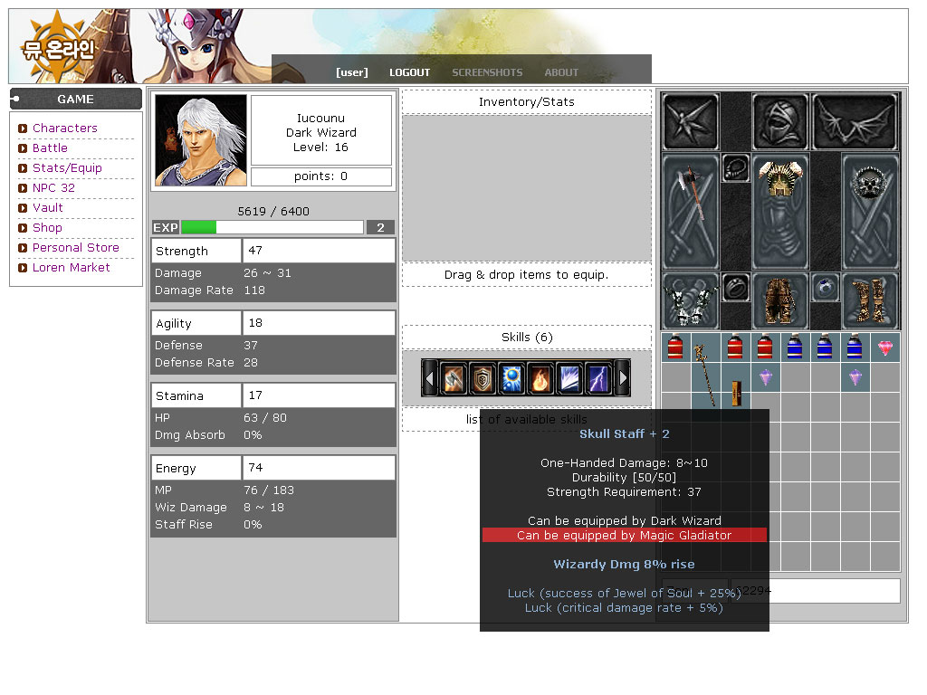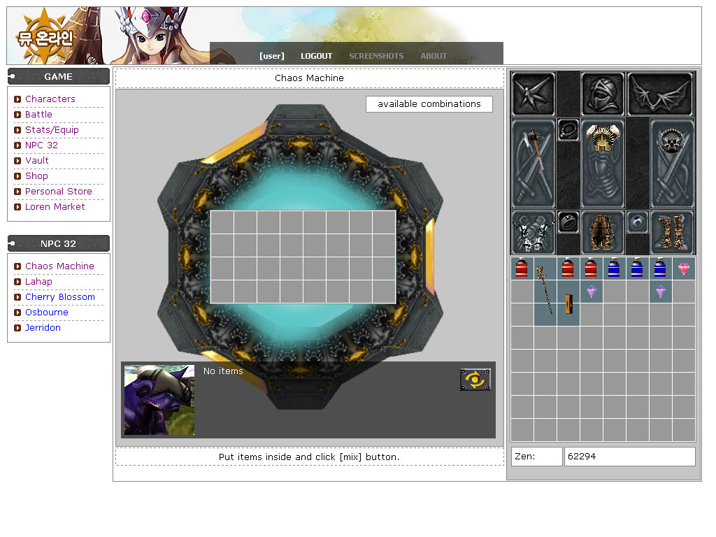 This rebuild keeps the heart of the original browser MU project — town maps, training spots, shops, inventory, character management, and the Chaos Machine — but presents it in a cleaner interface that is easier to run, maintain, and expand.